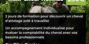 Pendant deux jours, les participants découvrent un cheval d’attelage prêt à travailler, sont accompagnés dans sa prise en main et peuvent évaluer son adéquation avec leurs besoins professionnels.